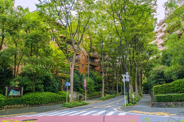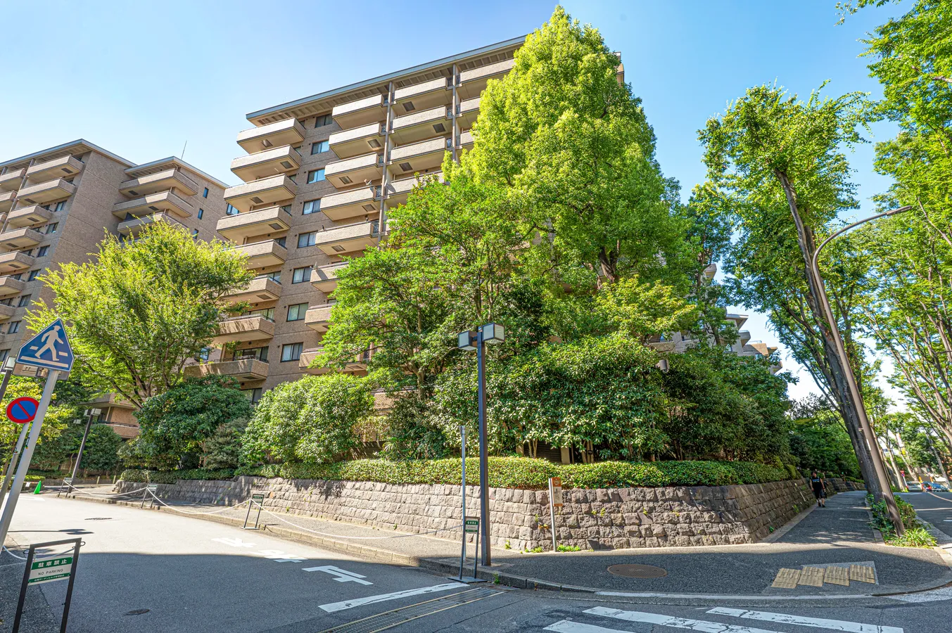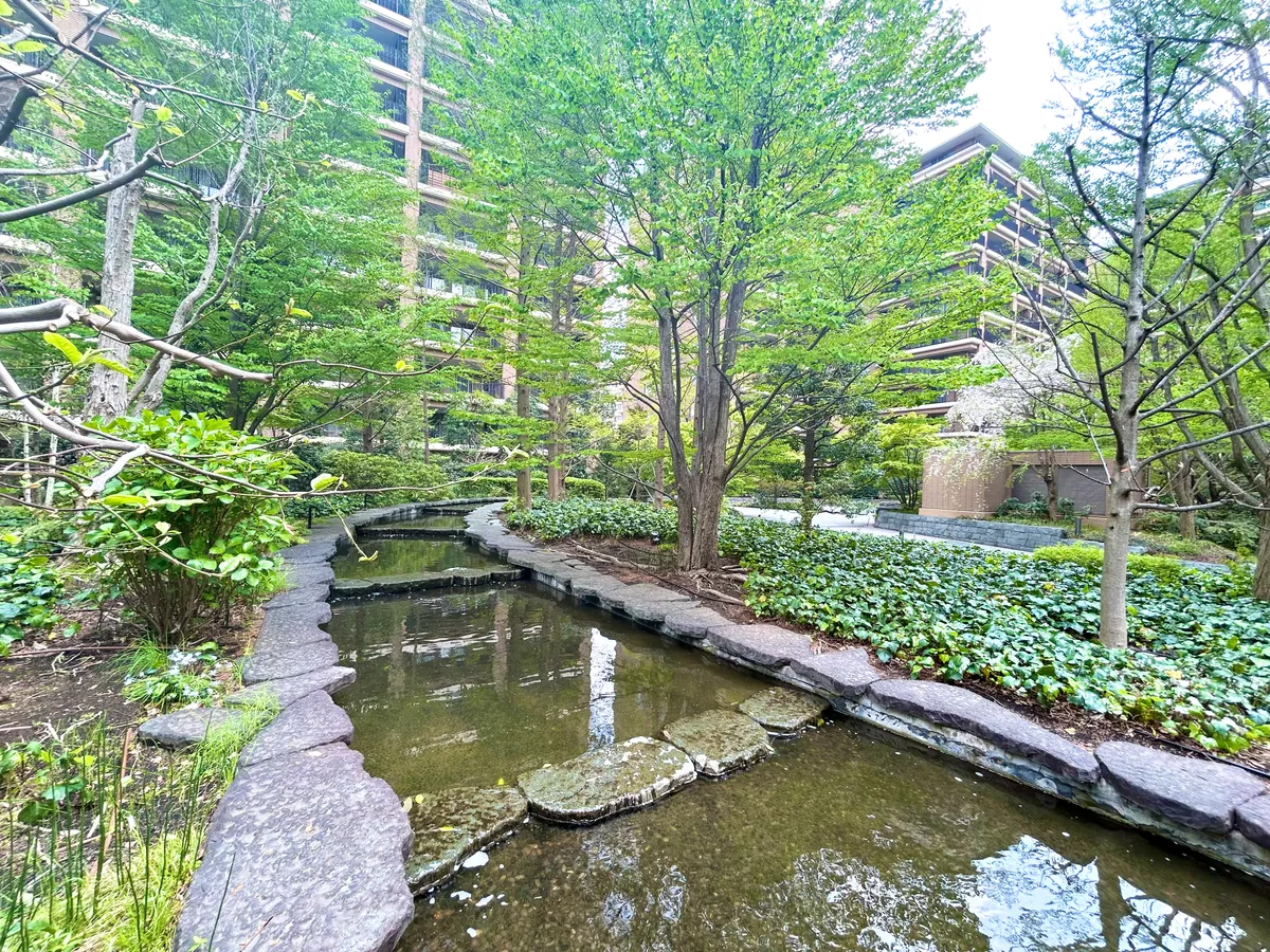 One of the Hiroo area’s most popular “vintage” condominium complexes is Hiroo Garden Hills, a collection of 15 buildings housing a total of 1,181 residences. Sited on a 6.6 ha plot, this spacious development is so blessed with natural beauty you have to remind yourself that you’re in the heart of the great city. Hiroo Garden Hills even features a shopping mall, whose retail and other facilities support daily life with a supermarket, a clinic and more. Next door to Hiroo Garden Hills is Hiroo Garden Forest, an assembly of eight condominium and other buildings. Together these complexes pamper inhabitants with the tranquility of lush green trees and grass.