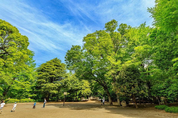 A three-minute walk from the station takes you to Arisugawa Park. On weekends, residents can be seen relaxing here, basking in the natural beauty of the passing seasons. The park’s high ground is replete with facilities for leisure, including a baseball diamond, tennis courts and Tokyo Metropolitan Central Library.