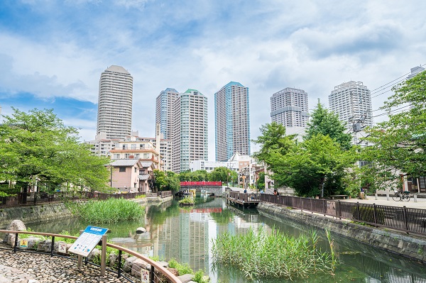 Tsukishima, known as part of Tokyo’s “Shitamachi,” is also one of the components of the Tokyo Bay area, joining districts such as Kachidoki and Toyosu. One of the benefits of Tsukishima is convenient transportation. From Tsukishima Station, strap-hangers can access two subway lines, the Tokyo Metro Yurakucho Line and the Toei Subway Oedo Line. The Yurakucho Line puts Ginza Itchome Station within 4 minutes’ reach; a transfer to the Yamanote Line brings residents to Tokyo Station in just 18 minutes total.