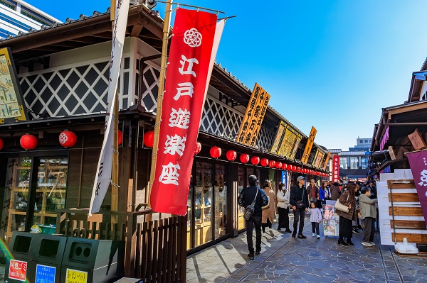 The world took notice of Toyosu when Tokyo’s central wholesale market moved here from Tsukiji. In February 2024, a leisure complex named Toyosu Senkyaku Banrai (a phrase meaning “a flood of customers” or “a roaring trade”) hung out its shingle next door. Senkyaku Banrai offers countless ways to have fun. Among its attractions are a 24-hour public bath complete with indoor and outdoor baths as well as rock saunas. There’s also a pedestrian mall styled after a city street in old Edo, where an extensive range of gourmet options make full use of the bounty from Toyosu Market next door.