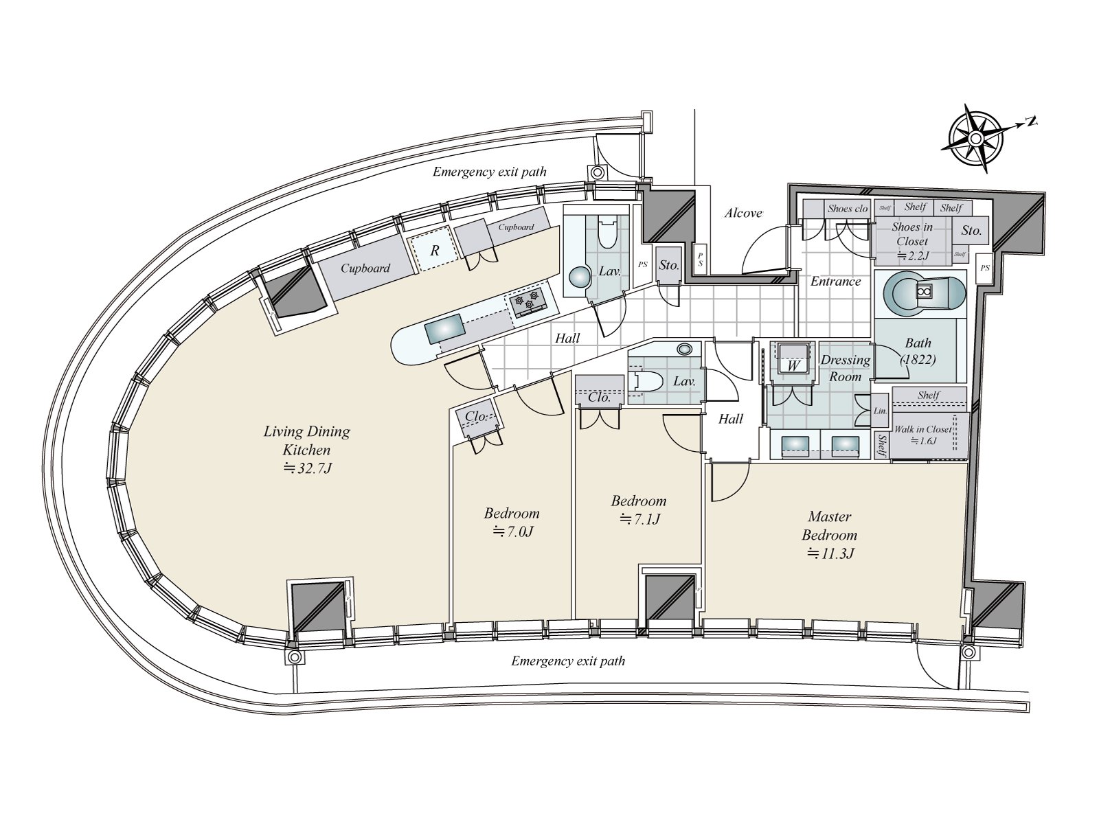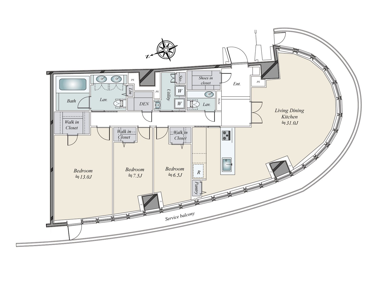 以“世界是由曲线构成的(Our world is made of curves.)”为主题,被称为室内装饰设计界巨匠的Bruno Moinard先生担任了设计监修。像高级酒店一样每天能接受日英双语的酒店服务。顶层有无边际游泳池(Infinity Pool),这些豪华的共用部分将你的日本生活变得更特别。