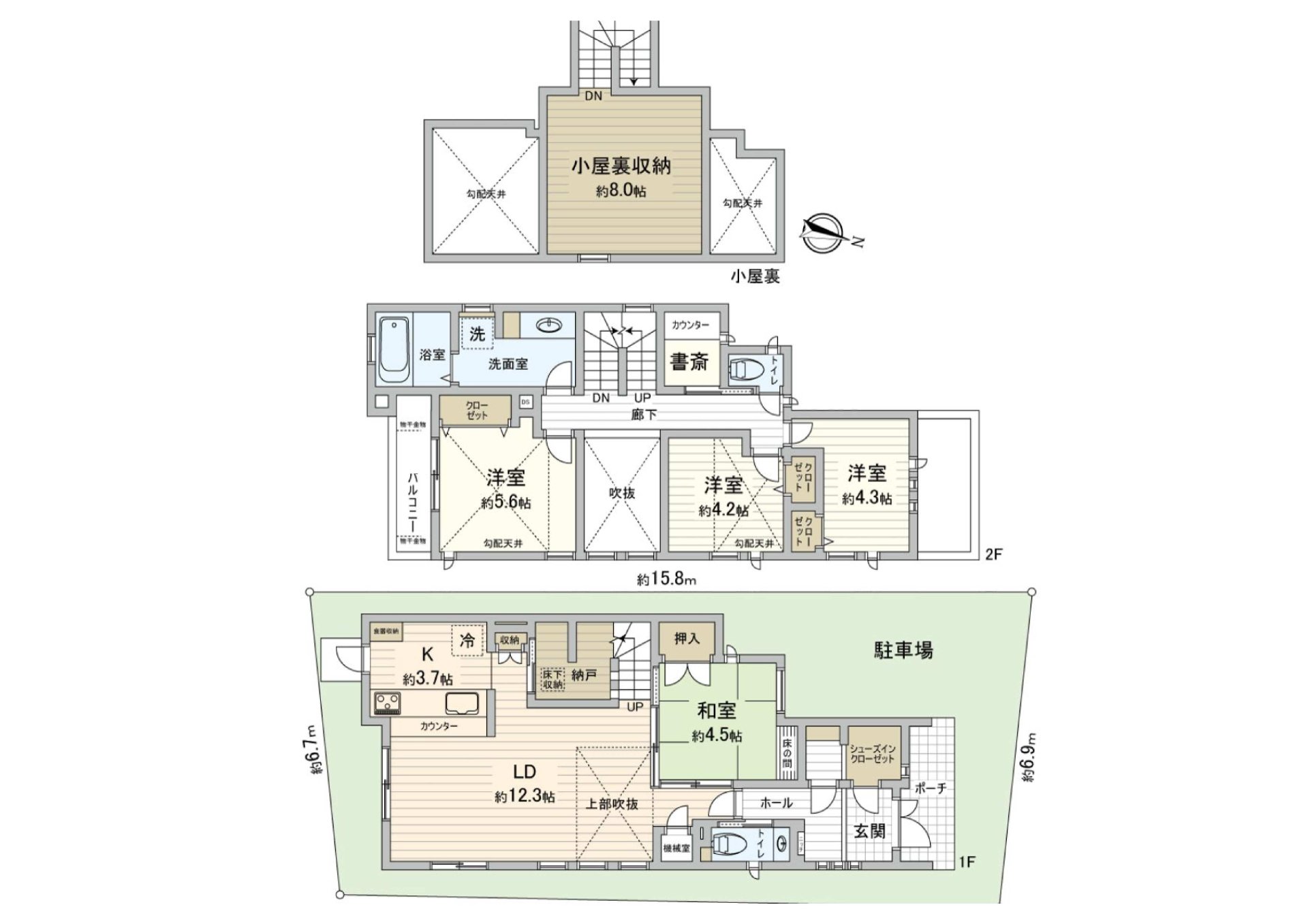 0 能在固定楼梯升起来的小房间背后收纳(约8.0张塌塌米)