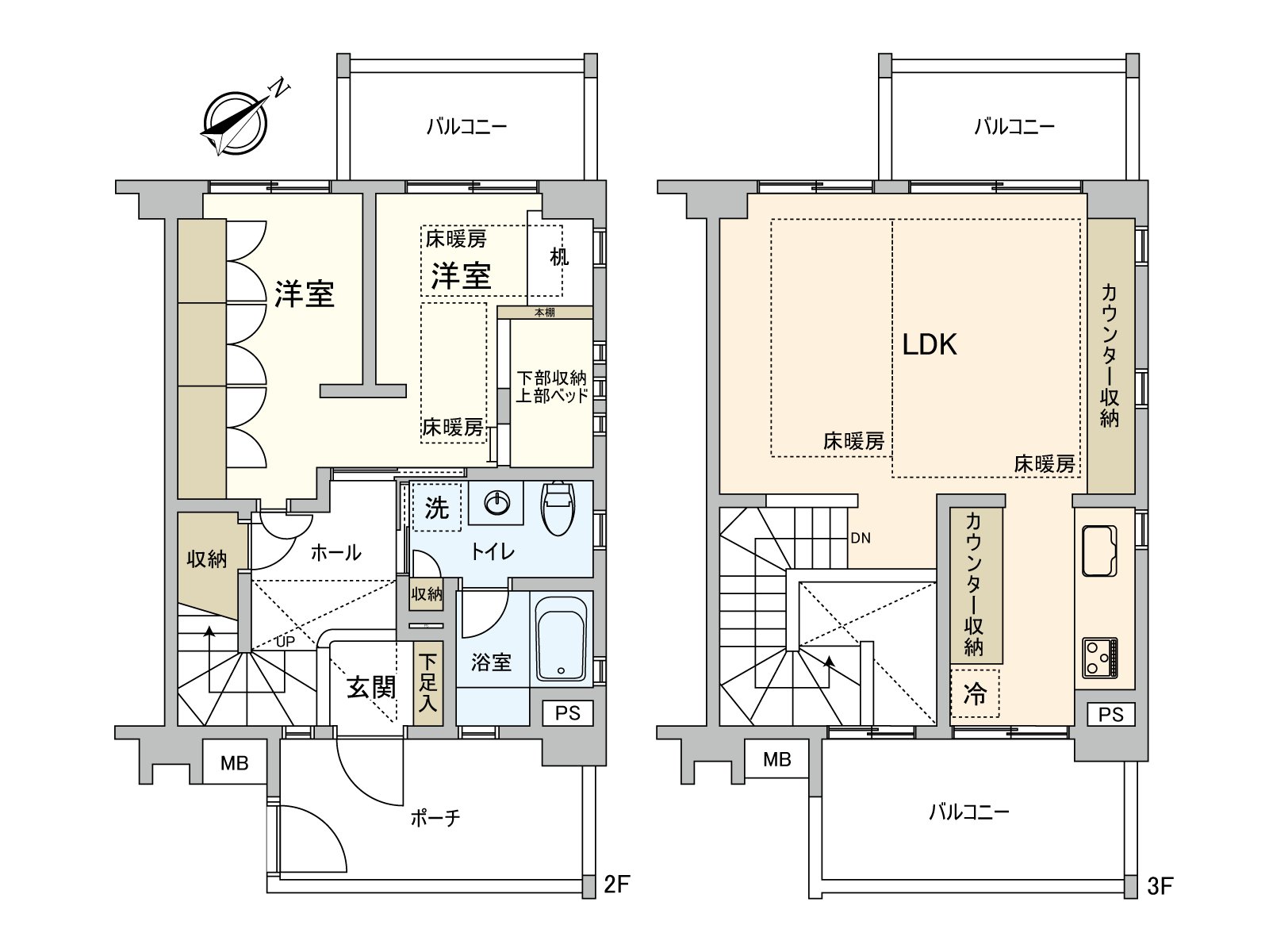 ○在3楼层,明亮和开放感觉根据北西侧,东南一侧2面阳台两面派采光与众不同