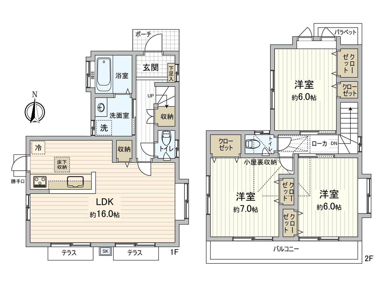 ・收纳丰富(小房间背后收纳、楼梯下边收纳、地板下边收纳、各居室的壁橱·厨房旁边的餐具室)