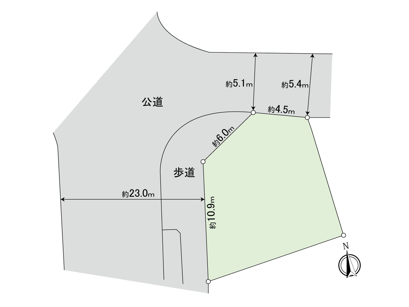 ○ 在西侧约23m、北侧约5.1m道路的角地有开放感觉