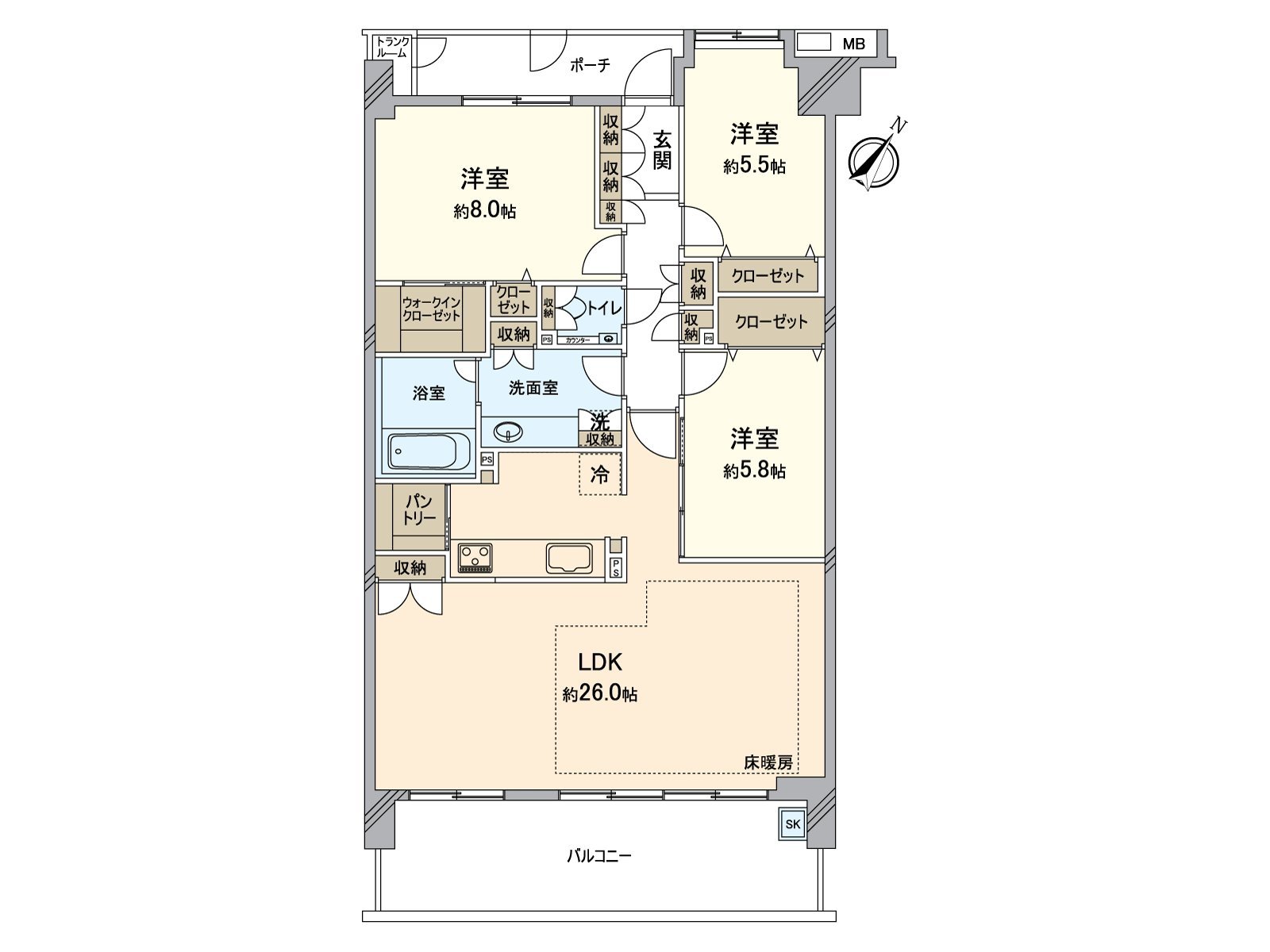 ○ 有实际使用面积100.39平米的舒适的3LDK