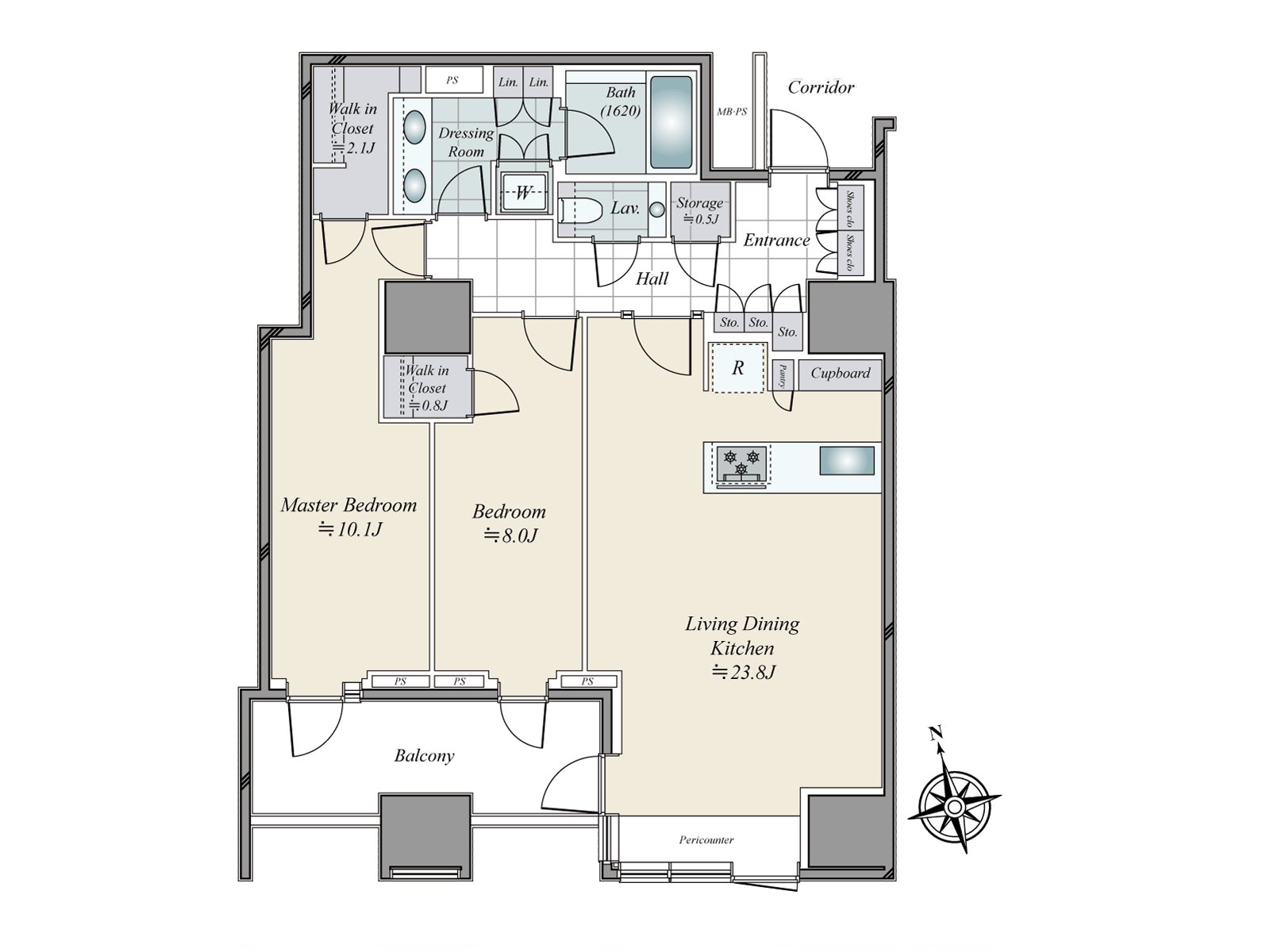 ○ 2LDK+2WIC+S型(地板在客餐厅,K,MBR开暖气)