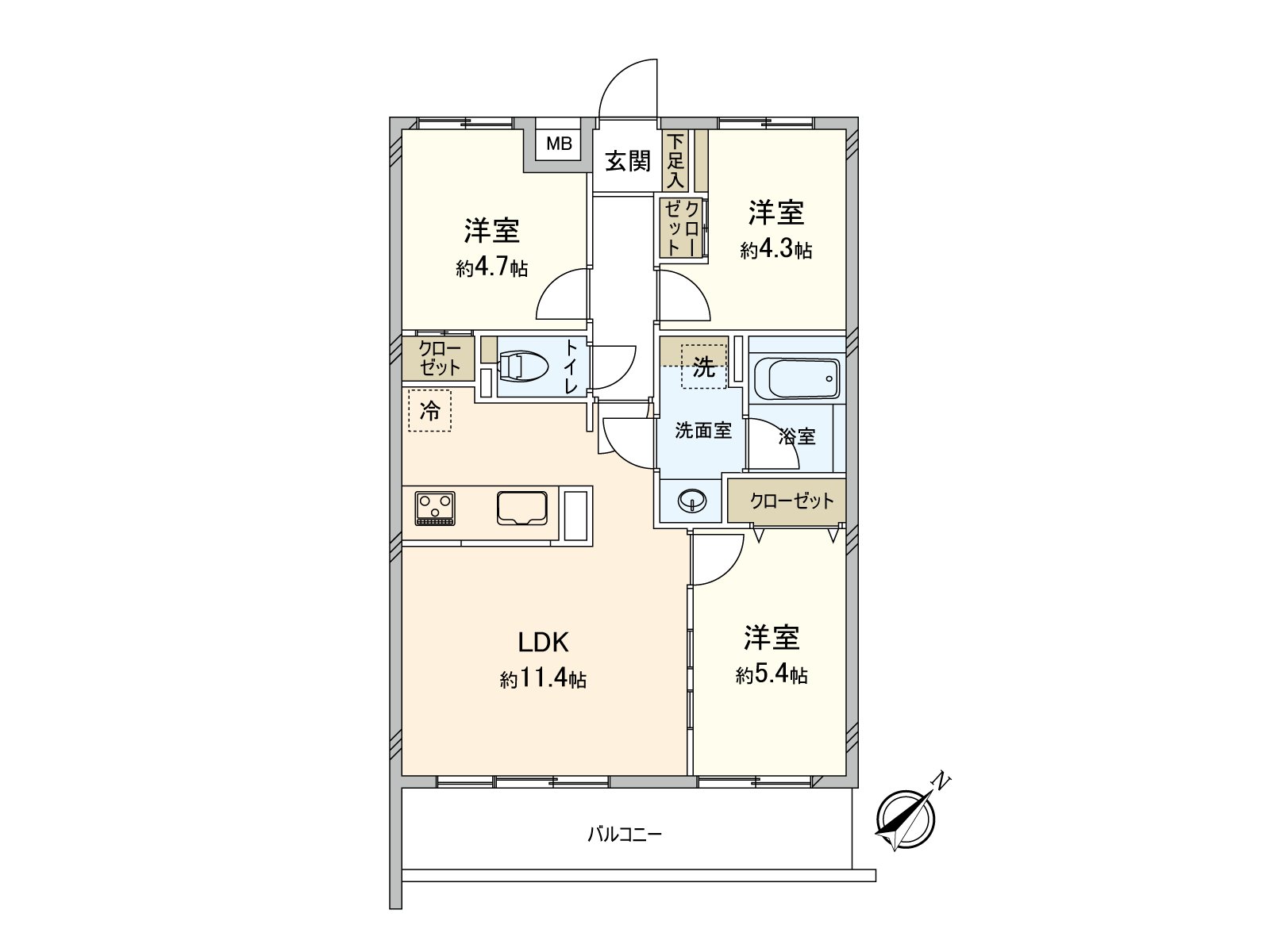 ○ 实际使用面积59.52平米的3LDK