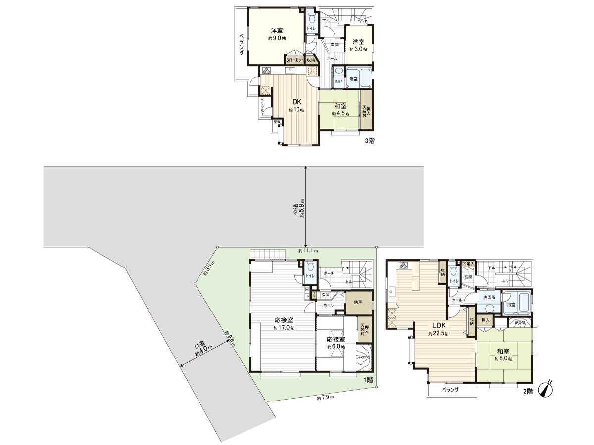 ・3楼是约4.5张塌塌米约10张塌塌米DK+继续之间的日式房间,约8张塌塌米西式房间