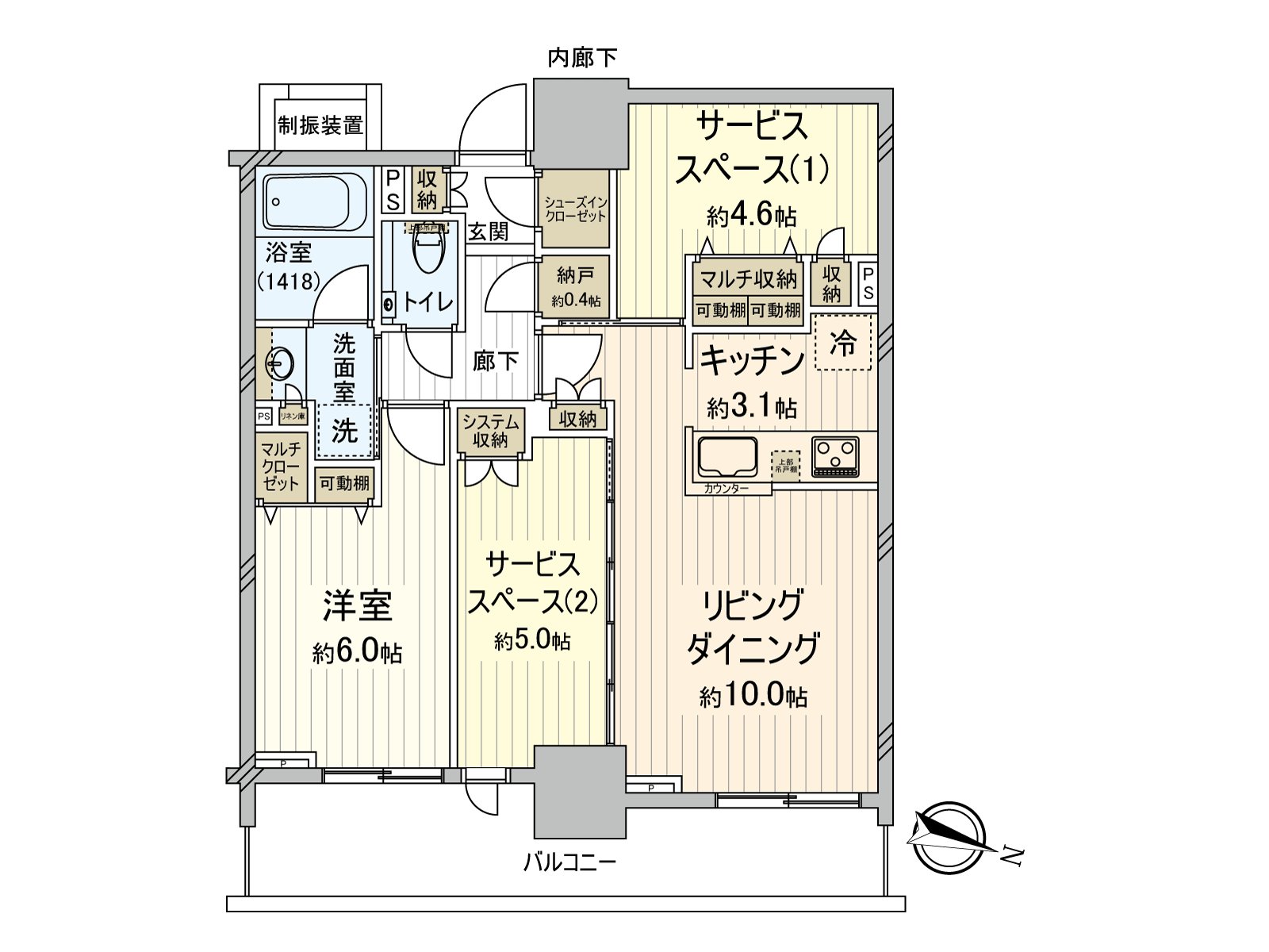 0以约2.65m的天花板高度,白为基调的亮的地板