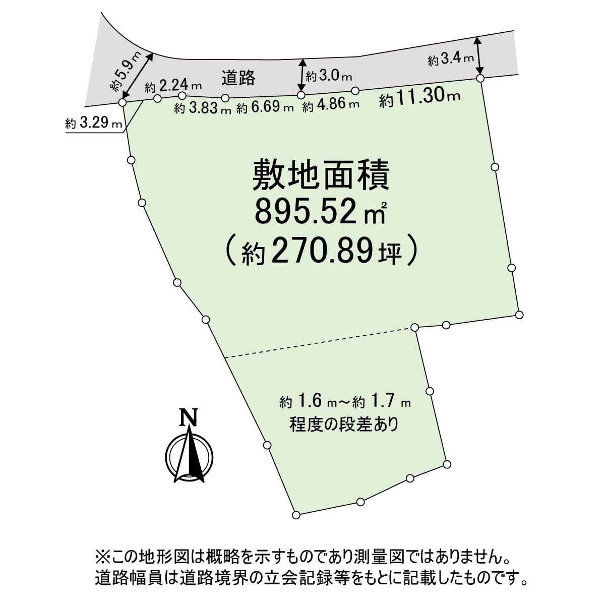 如上所述建筑退缩尺度面积变成概算。在本房源用地里有约1.6m~1.7m高低差别。