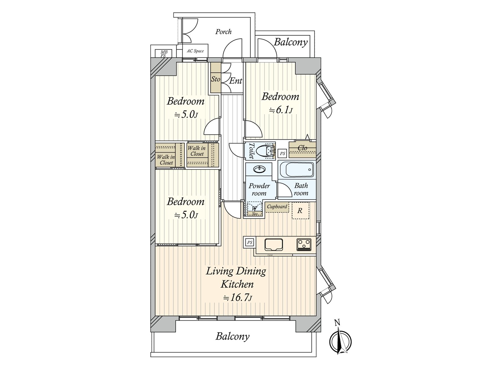 ○ 实际使用面积71.28平米的3LDK