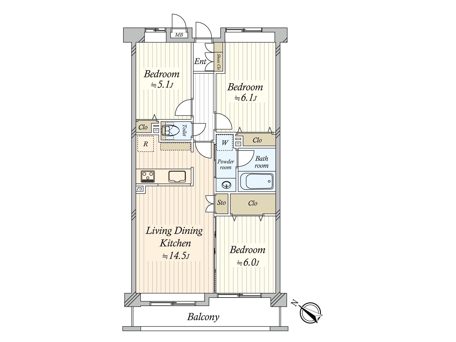 ○ 实际使用面积66.93平米的3LDK