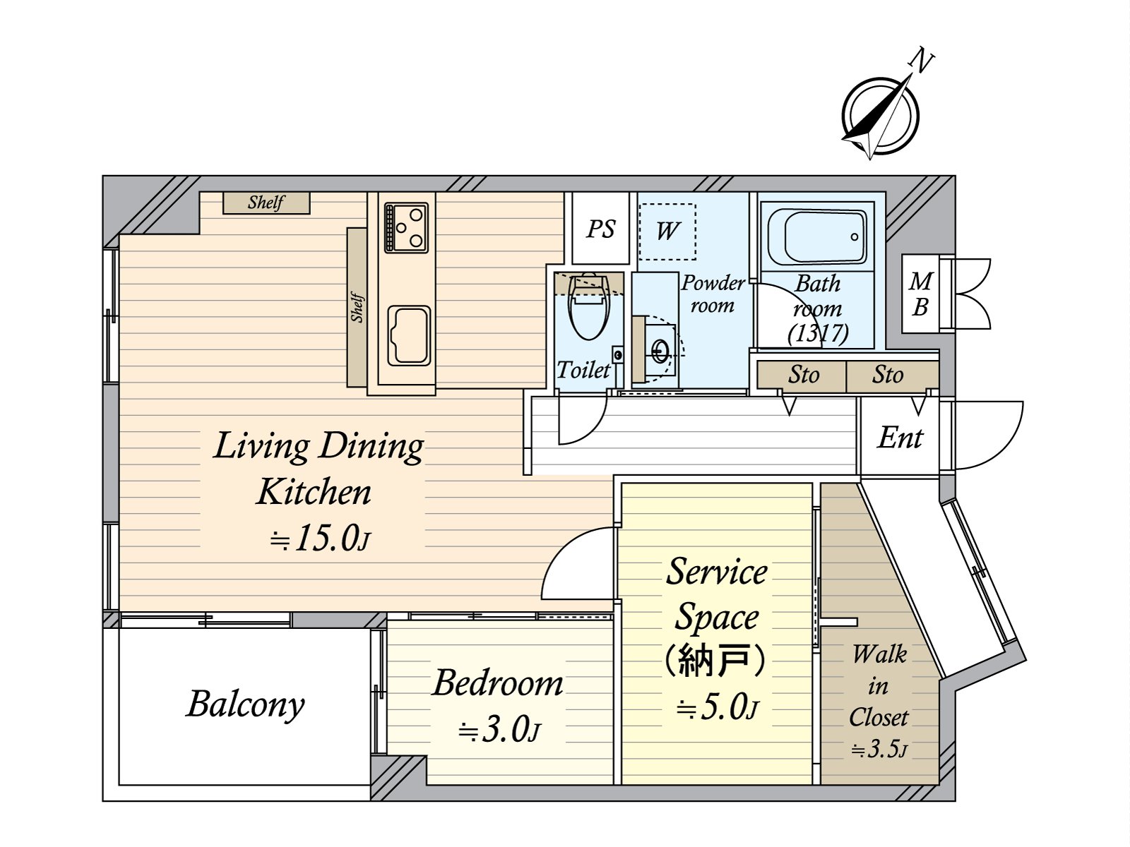 ・用约3.5张塌塌米收纳量丰富有机能性的步入式衣帽间和泥地