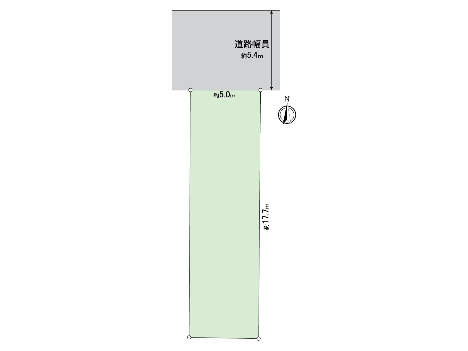 ○ 用地正面宽度约5.0m