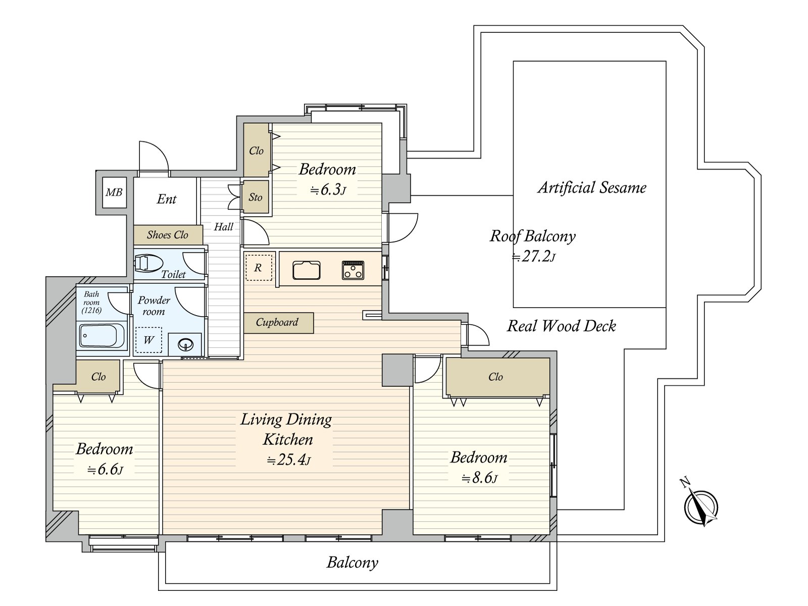 ○木露台、人造草坪(一部分、屋顶阳台)