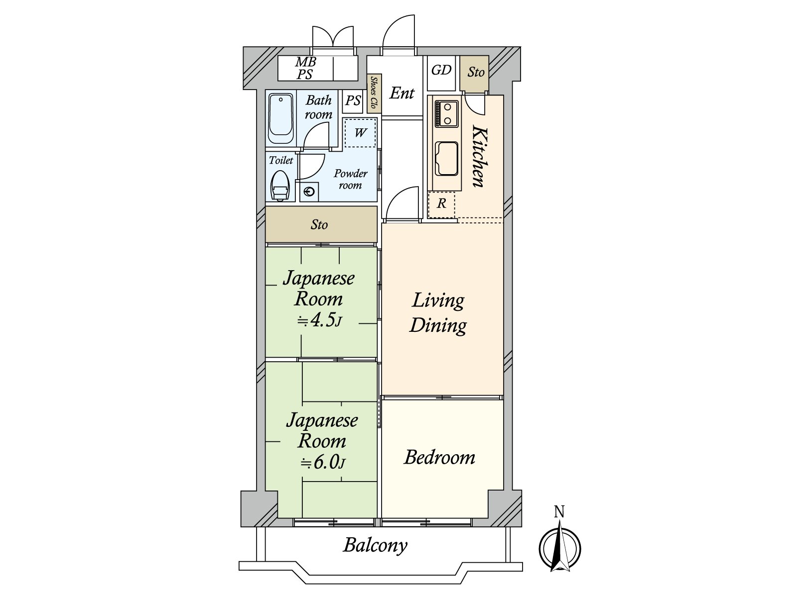 ・实际使用面积约58平米的3LDK