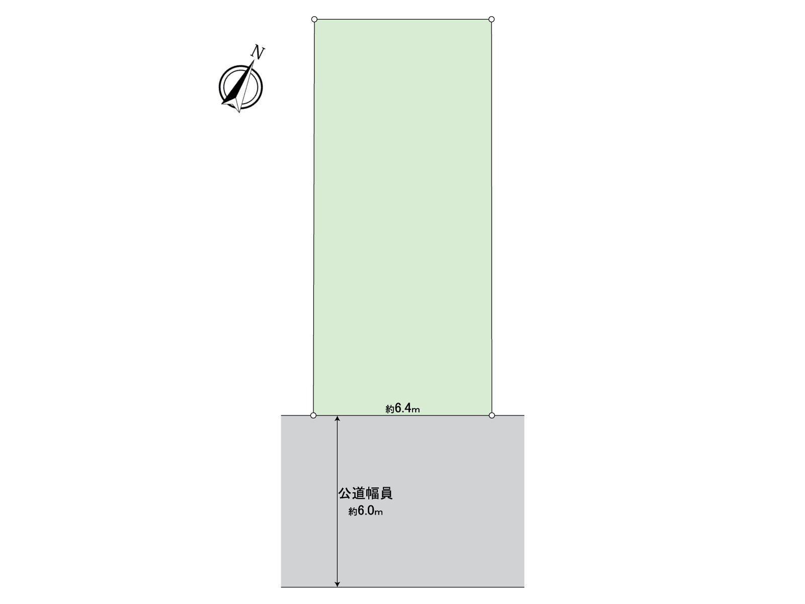 ○ 正面宽度:南侧约6.4m