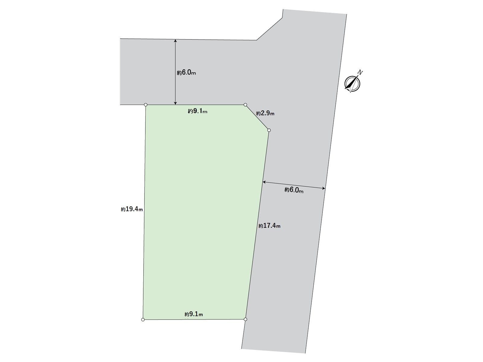 ・确保东北一侧约17.4m,西北一侧约9.1m的正面宽度