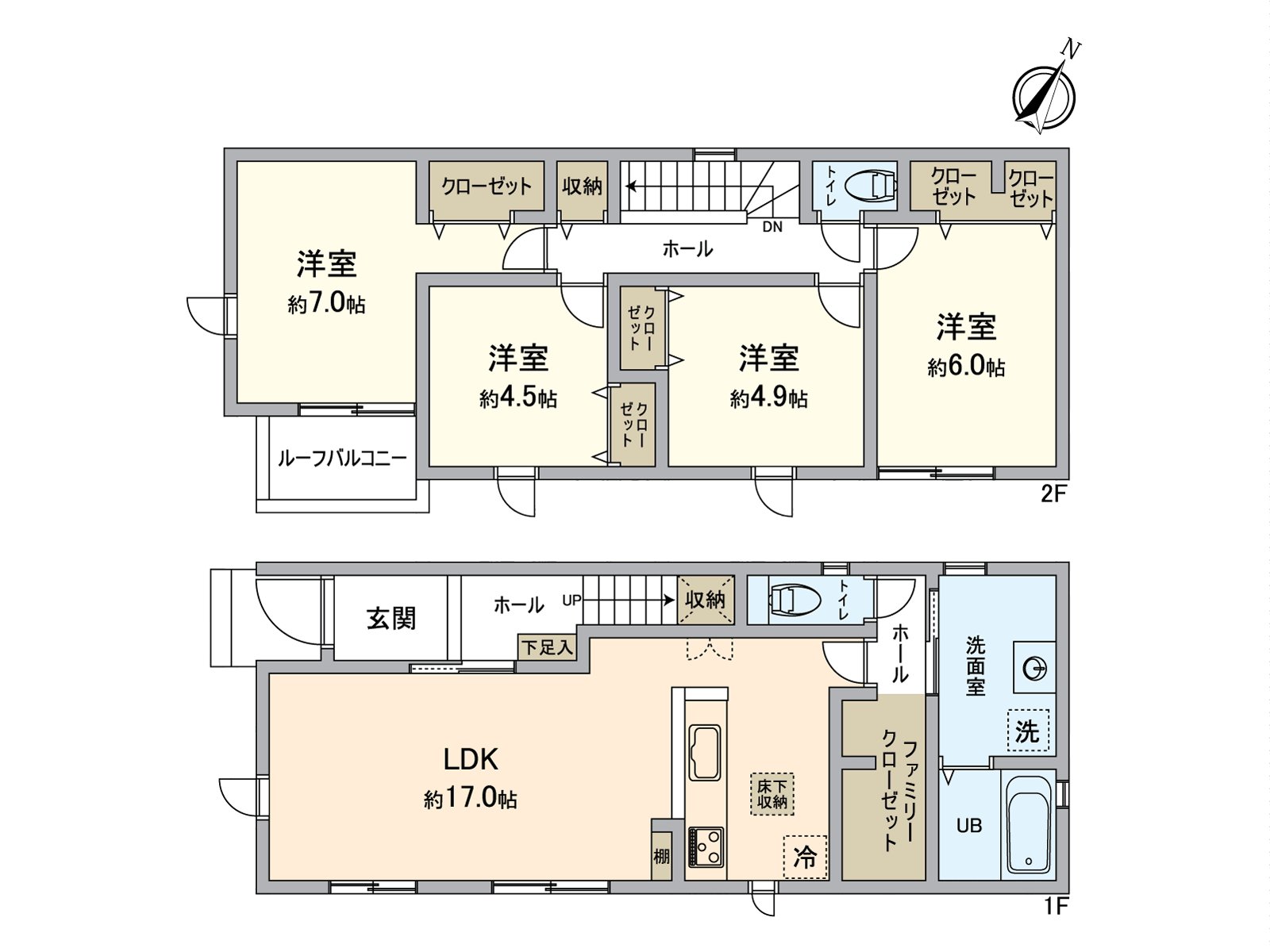 ○ 家族被吸引的宽敞的约17.0张塌塌米LDK