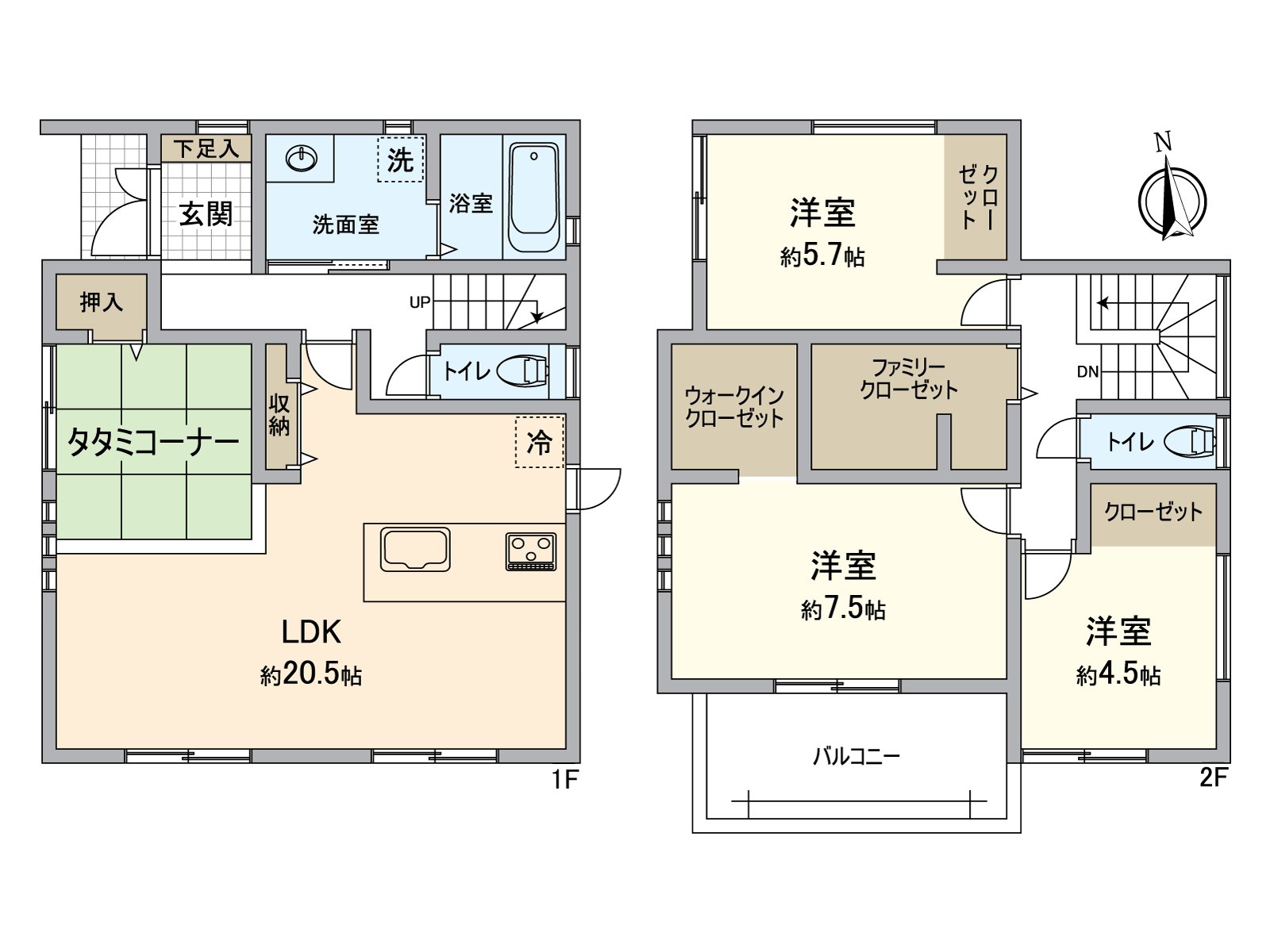 ○ 家族被吸引的宽敞的约20.5张塌塌米LDK(含有畳角)