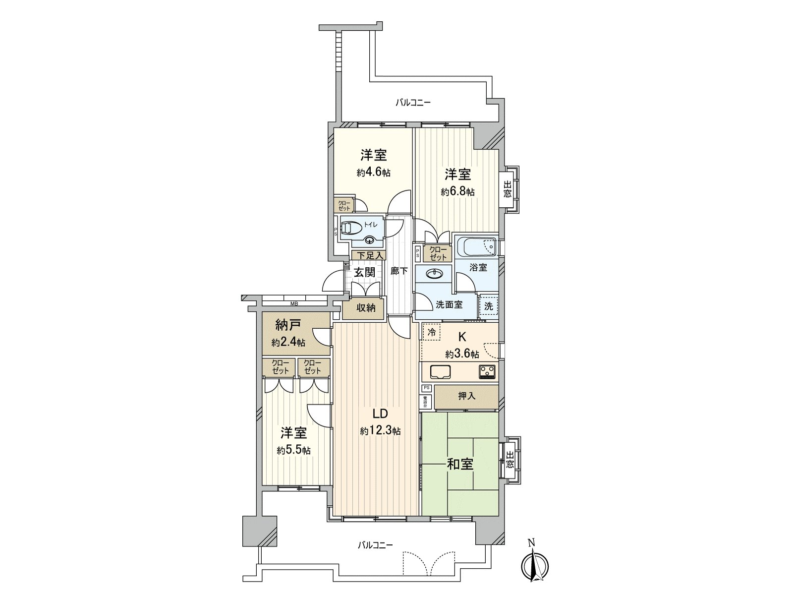 ・在西式房间,1个房间,所有房间壁橱的在北侧在2个房间南侧