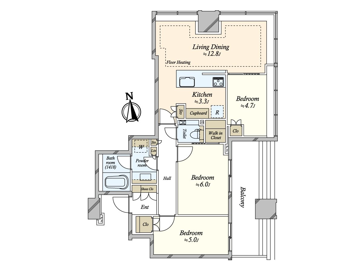 ○ 实际使用面积70.54平米,18楼部分,3LDK