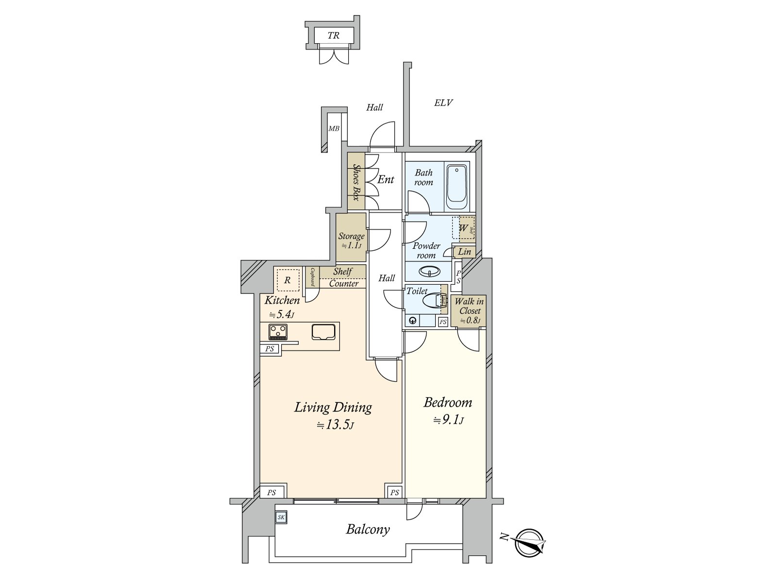 0 实际使用面积71.84平米,1LDK的房型