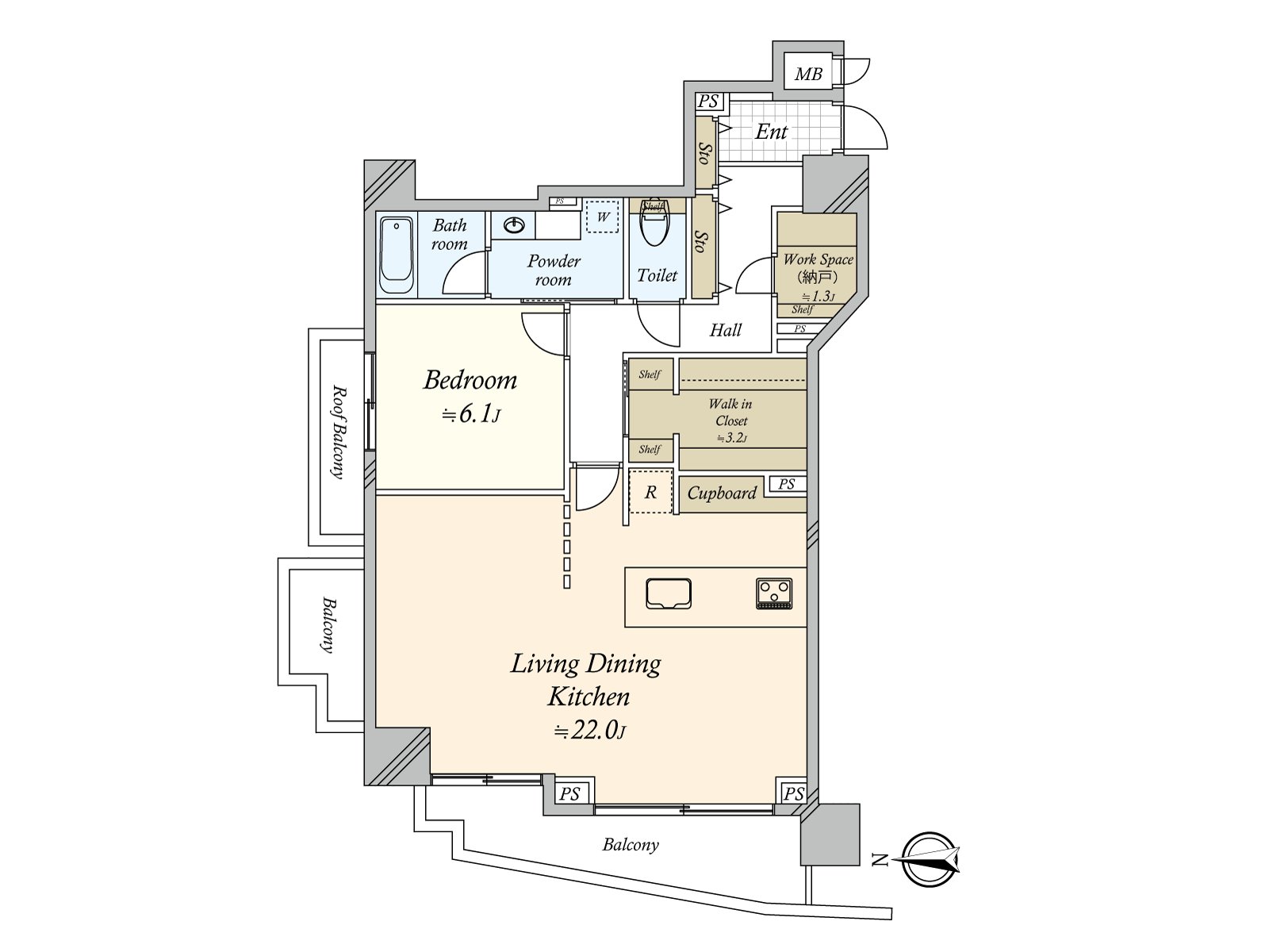 0 实际使用面积71.11平米,1SLDK的房型