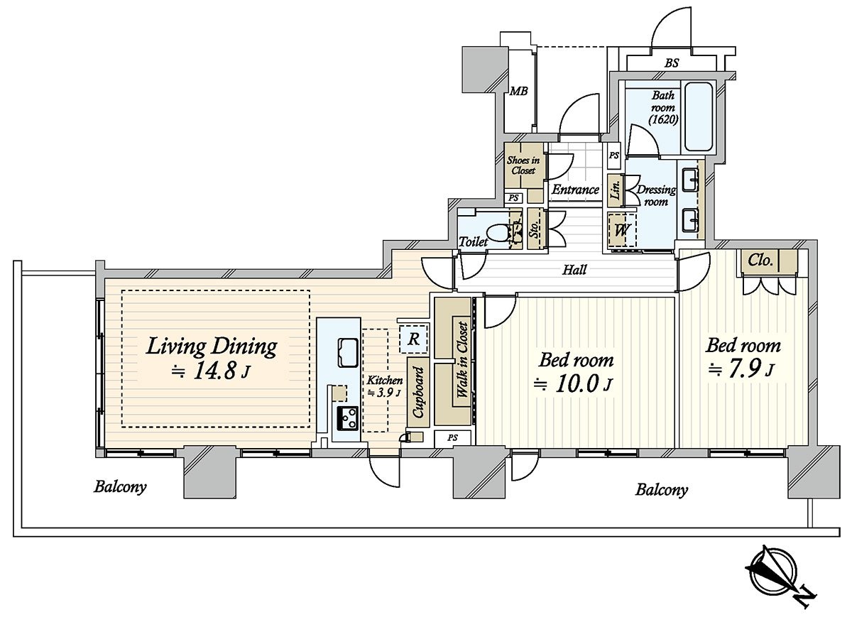 ○ 实际使用面积85.57平米,2LDK+WIC+SIC的房型