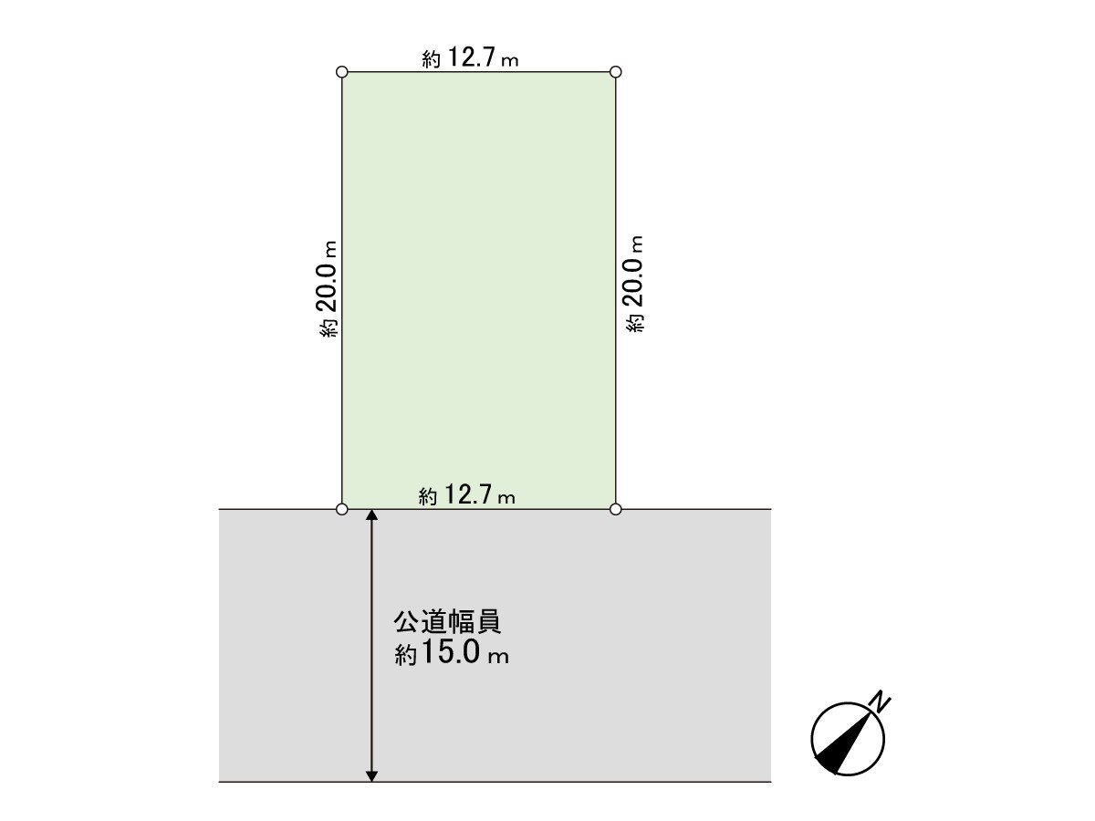 ○东南一侧公路幅员约15.0m,约12.7m接道