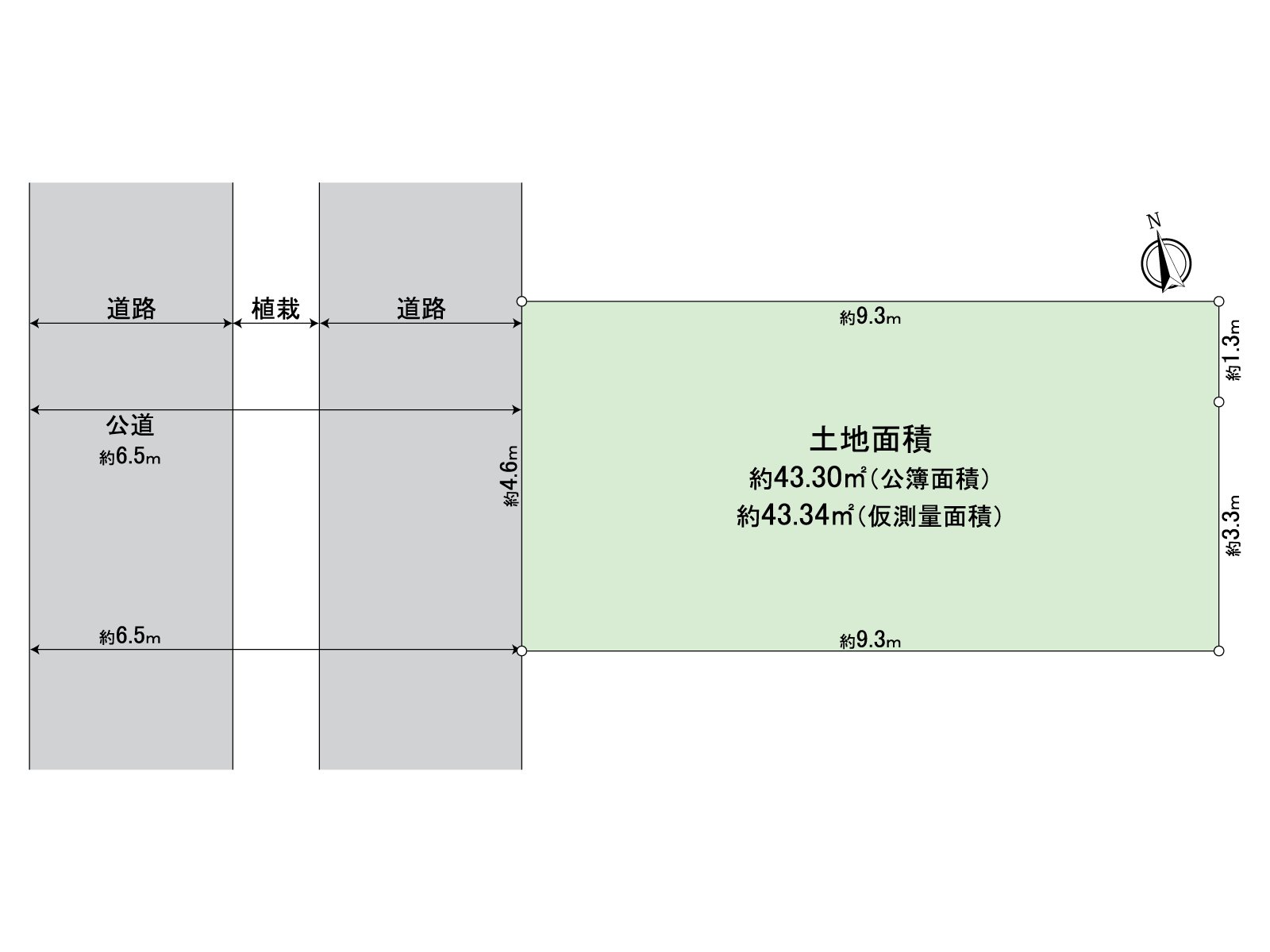 ○土地面积43.3平米(约13.09坪)