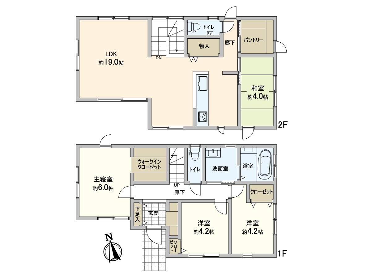 ○ 约6.0张塌塌米西式房间有步入式衣帽间,厨房在旁边作为餐具室和丰富的存储空间