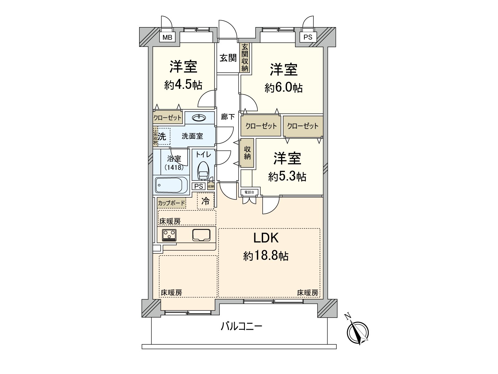 ○ 在客厅,餐厅,厨房分别地板暖气有