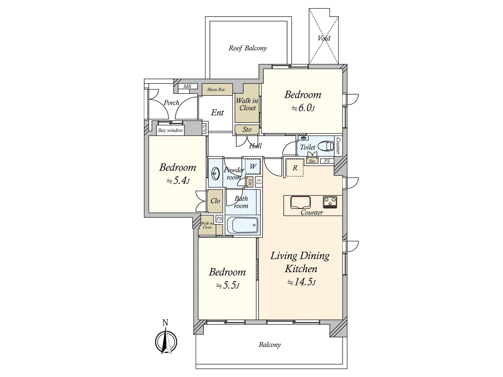 ・约6.0张塌塌米,约5.5张塌塌米,约5.4张塌塌米西式房间