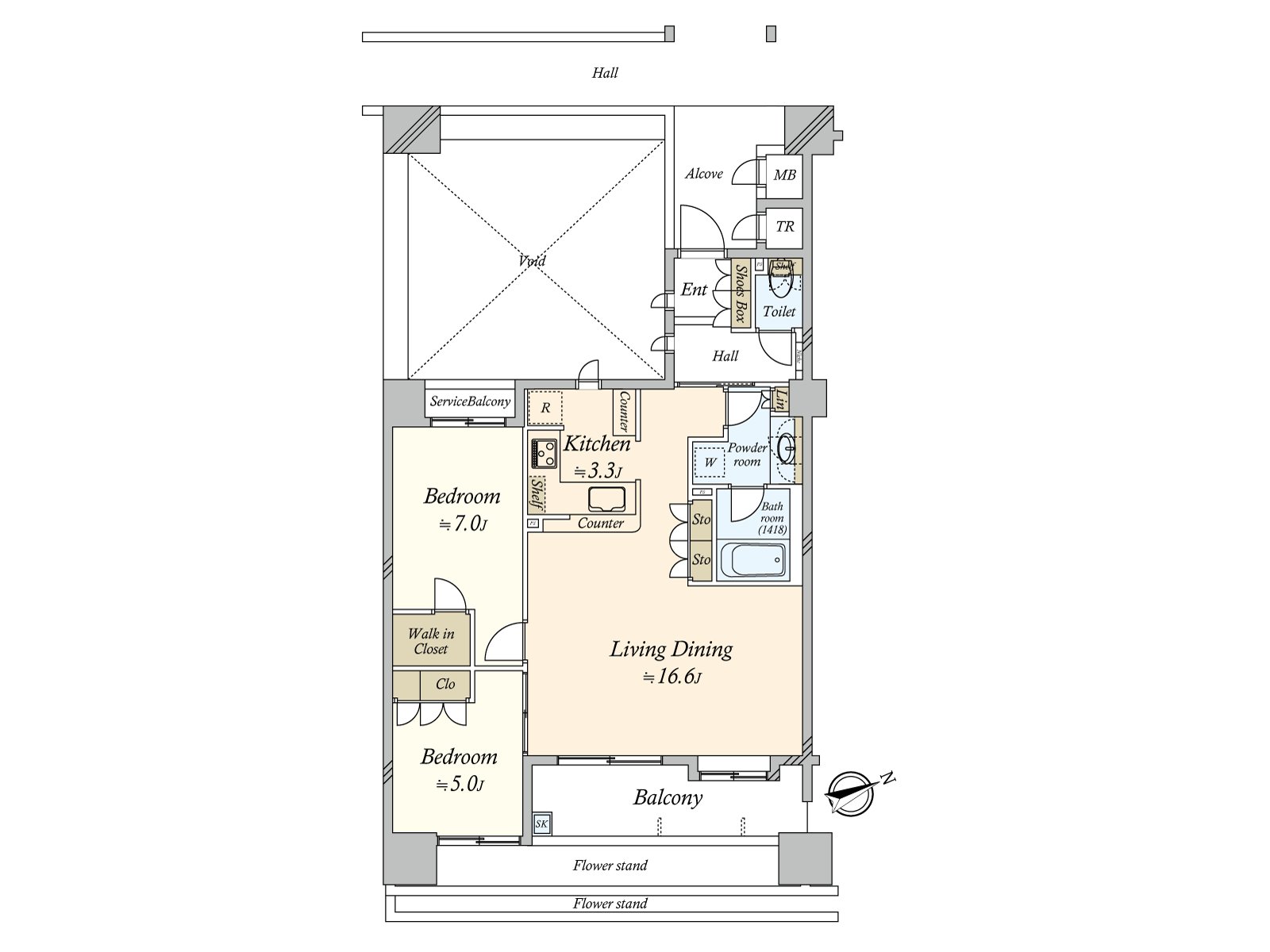 ○ 在考虑隐私的门口的前面的凹室、楼梯井