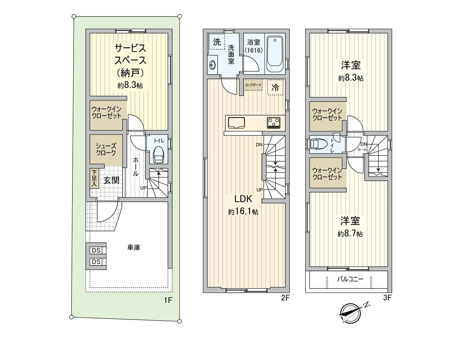 ○ 木造3阶建/2LDK+S(储藏室)