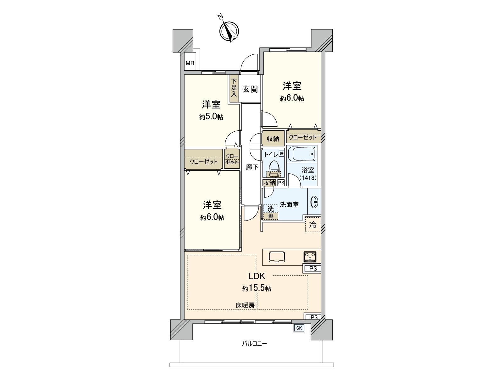 ○ 实际使用面积73.02平米的3LDK