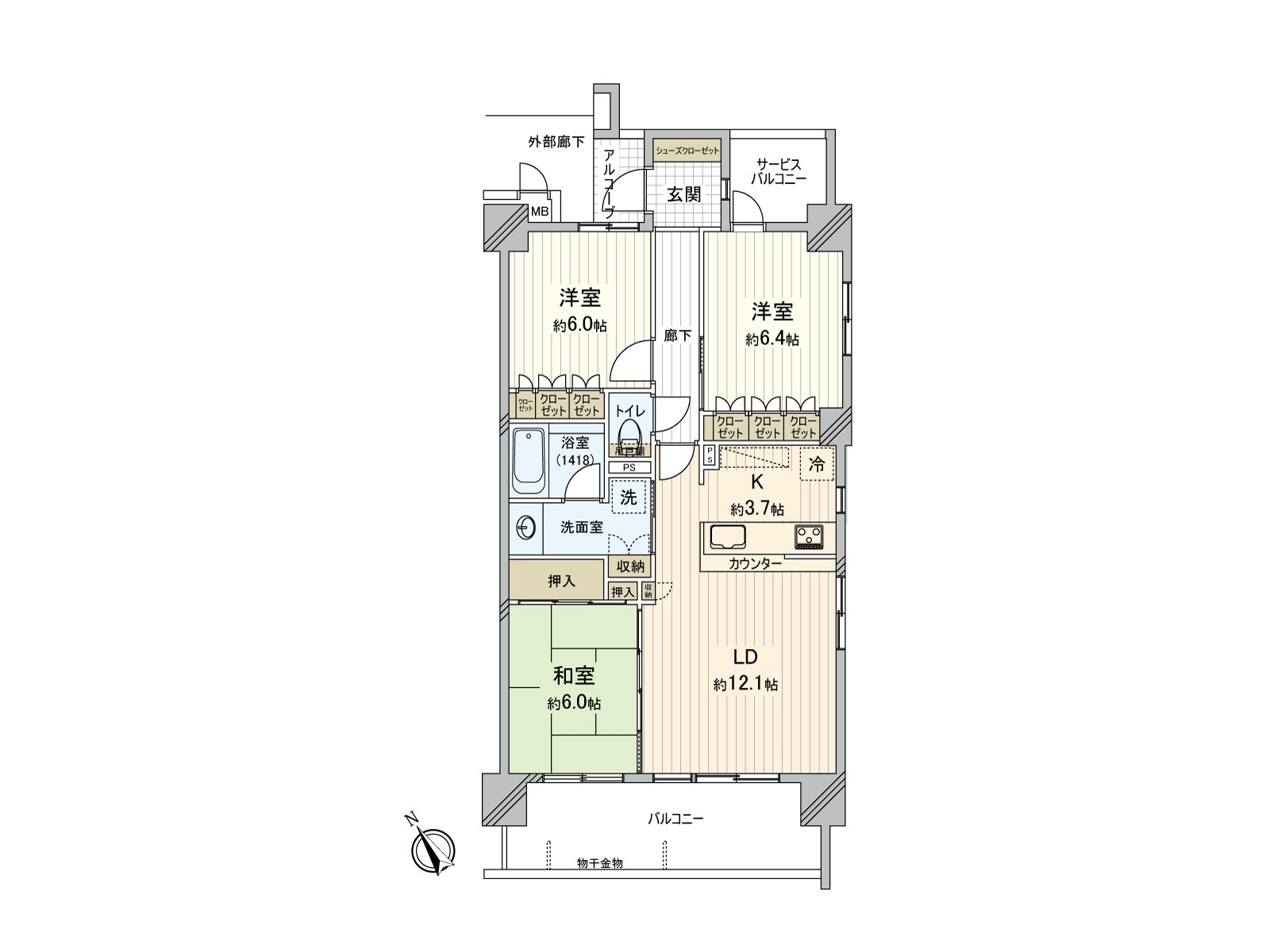 ○ 房型3LDK型(约超过6张塌塌米全居室)
