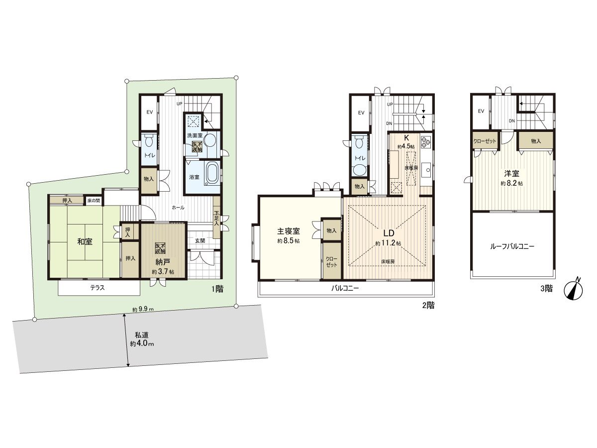 ○ 作为风景、阳光、解放感良好度的3楼屋顶阳台