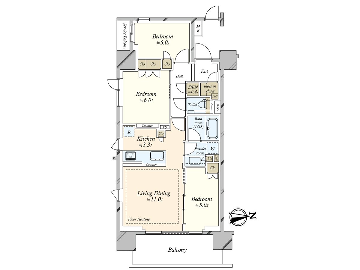○实际使用面积:67.72平米的3LDK