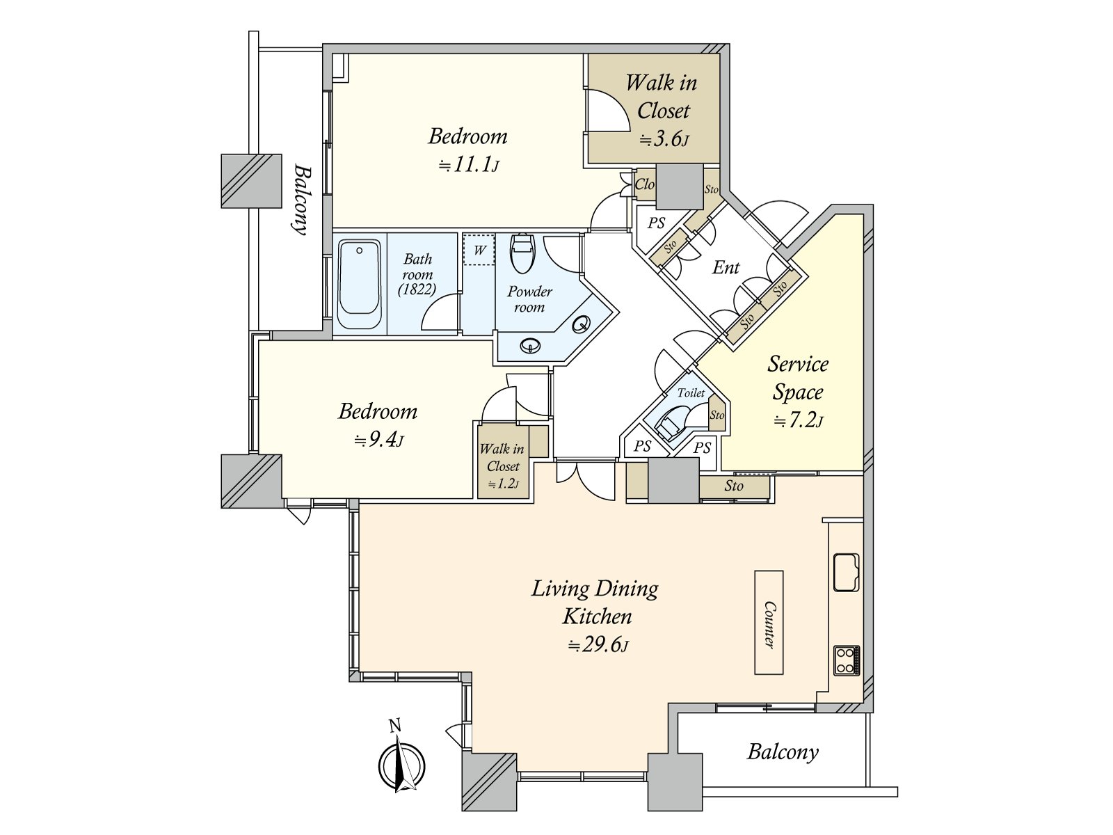 0步入式衣帽间2个地方(3.6张塌塌米.1.2张塌塌米)有
