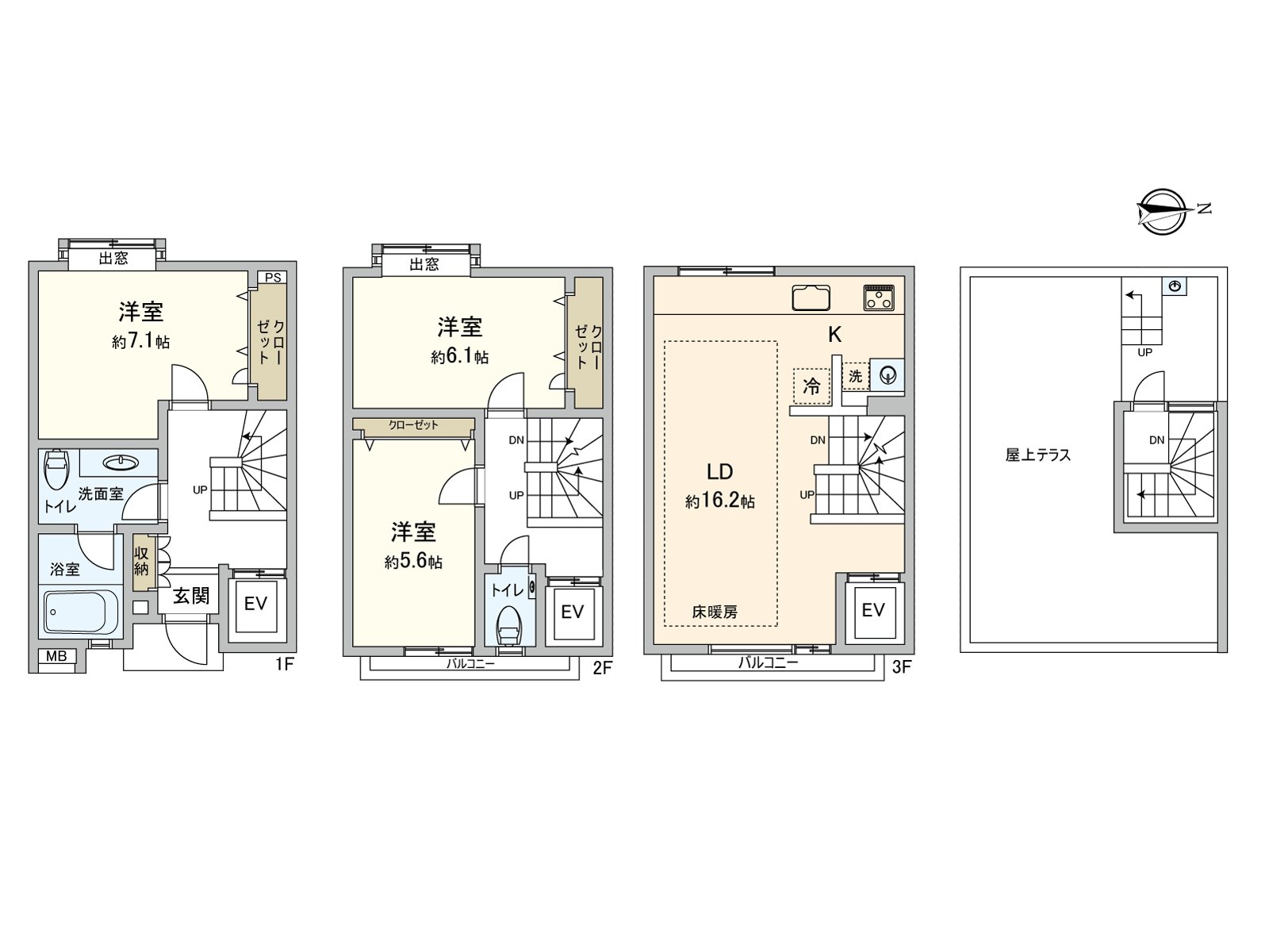 0LDK约16.2张塌塌米和能舒适地舒畅的空间(地板暖气敷设)