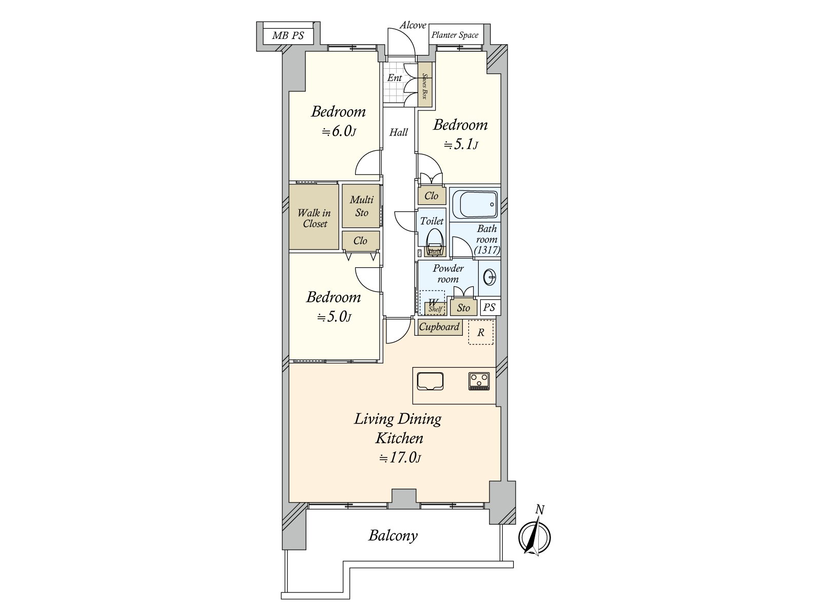 0包括西式房间的WIC在内,在各居室从属于存储空间