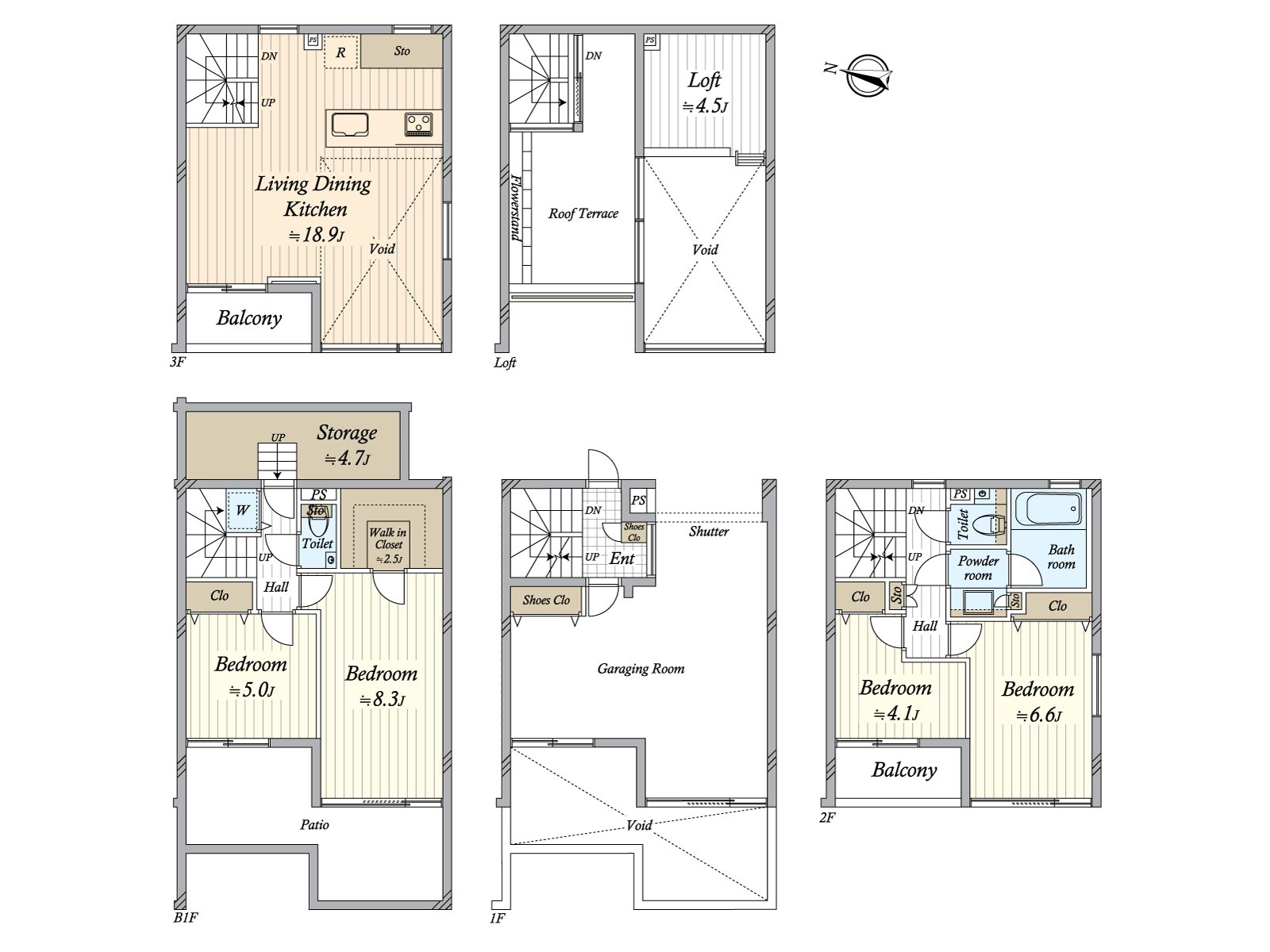 0天花板高度约3.8m配高腰带的LDK约18张塌塌米