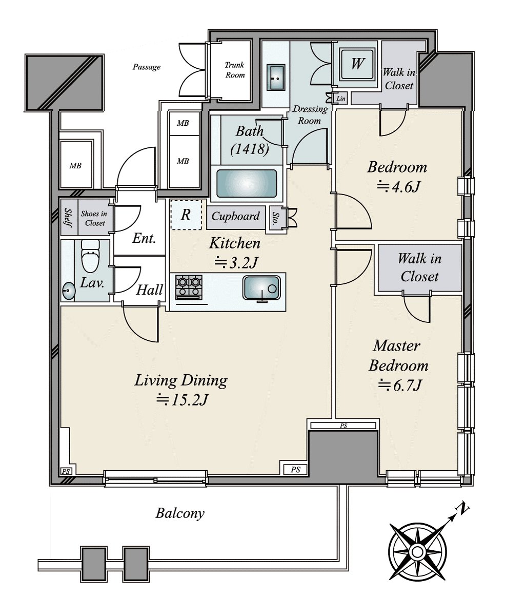 只有高层才有的展开,有的风景眼下展现,也能在远处希望都心的大楼群以及东京铁塔。为表情根据气候以及时间段变化能在每天的生活中感到都市的跳动。