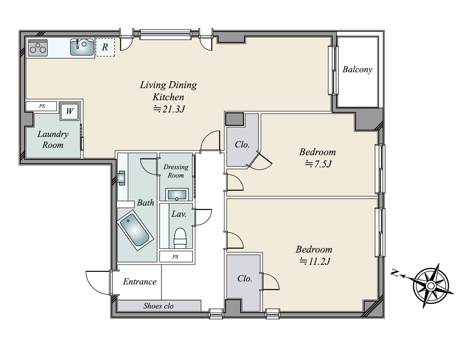 ・有93.08平米,2LDK的舒适的房型