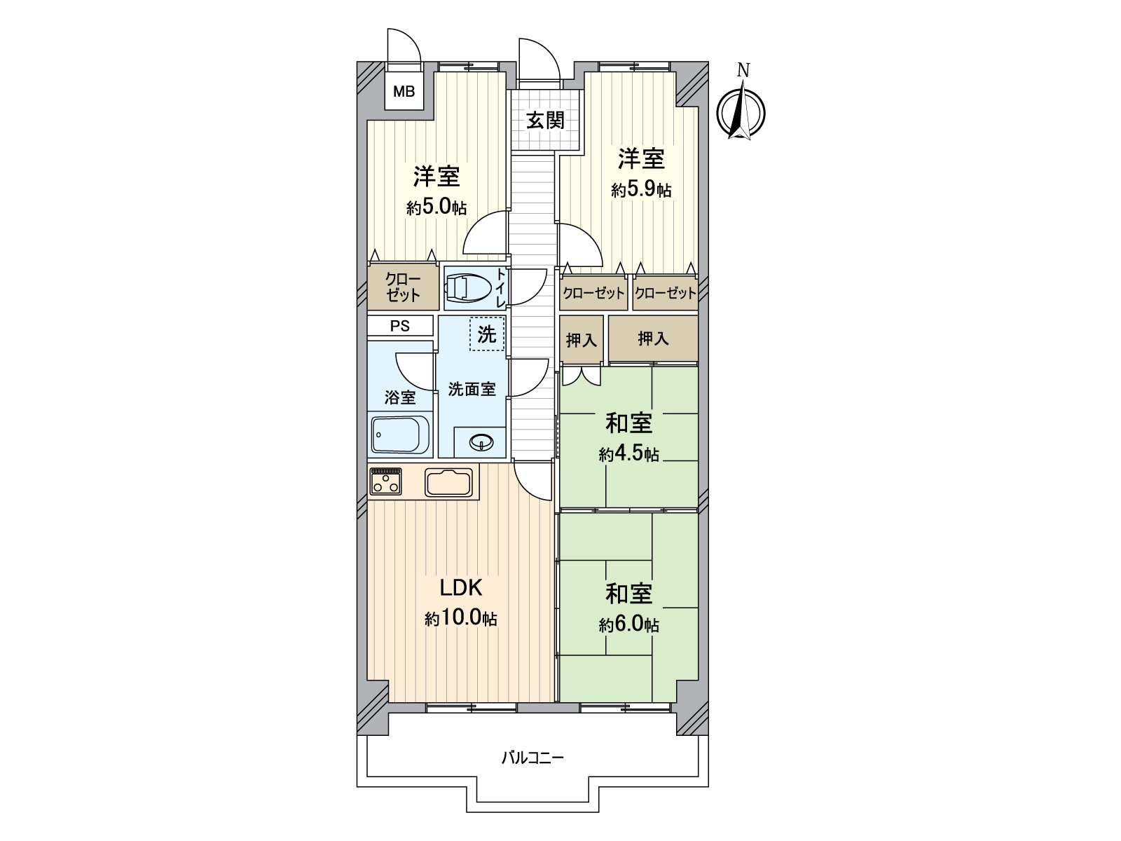 ○ 日式西式客房被均衡地安置的4LDK