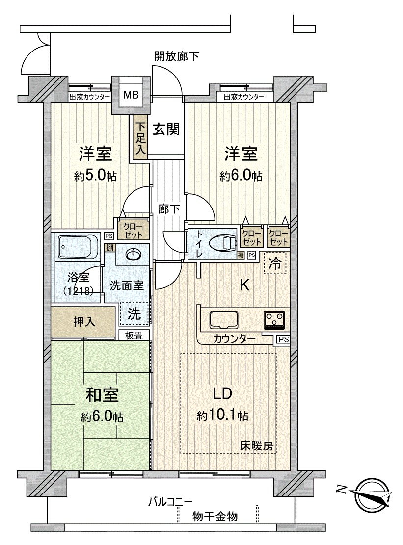 ○地板暖气TES温水式对实际使用面积约64平米的3LDK,客餐厅部分