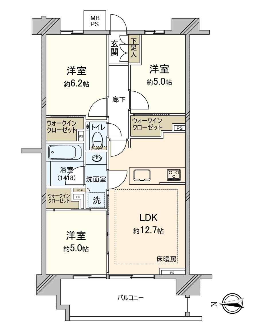○ 容易使用的3LDK的房型